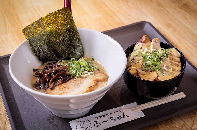 ぶーちゃんは、山梨県甲府市国母にあるラーメン店。貝と甲斐をかけた「甲斐豚骨ラーメン」を中心に、鶏ガラや季節限定の創作ラーメンをご提供。看板ラーメンの甲斐豚骨は10時間以上かけて煮だしたクリーミーな豚骨と貝のエキスを抽出した出汁を掛け合わせたダブルスープ。動物系のコク深さと魚介の上品な旨味が溶け合うワイルドながらも繊細なスープ。幅広い世代に食べて頂きたい思いで、豚骨臭は抑えめに、優しい味わいが特徴です☆